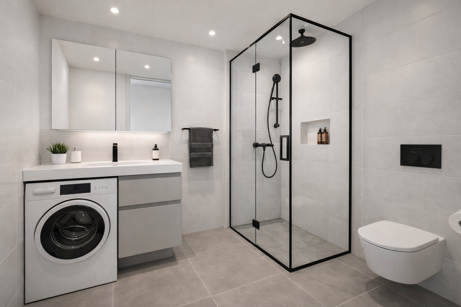hal/gang; twee slaapkamers aan de voorzijde; separaat toilet met fontein; badkamer met wastafel en separate douche en wasmachineaansluiting.